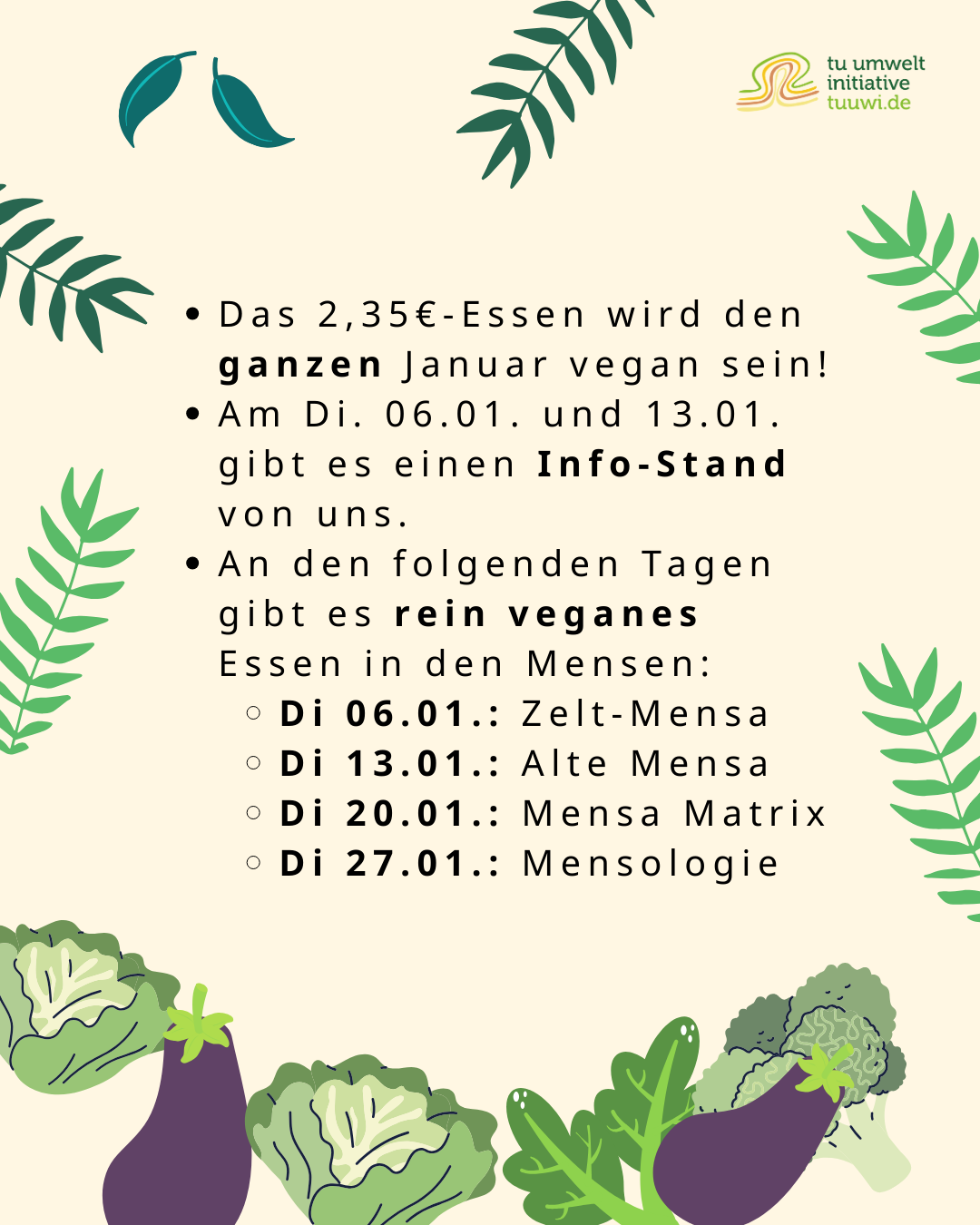 Wir als tuuwi begrüßen somit sehr die Aktion des Studentenwerkes zum Veganuary. Falls du uns bei unseren tuuwi-Aktionen unterstützen willst, melde dich gerne bei uns!